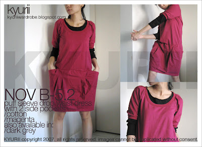 NOV B-5.2 Puff Sleeve Drop Waist Dress / Magenta